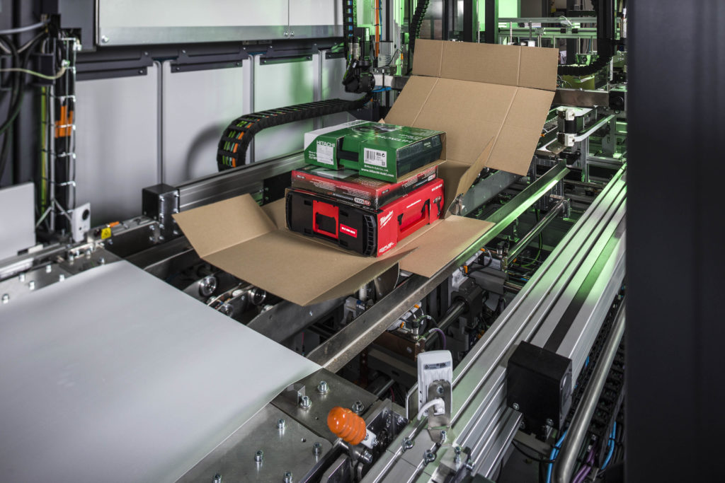 It comes in the form of CVP-500. This inline autopacker from Neopost sizes (using 3D scanning), constructs, tapes, weighs and labels each individual order – whether of individual or multiple items. With a cycle time as short as seven seconds a single operator can do the work of up to ten packing stations. Typically there is a 20% saving in the use of cardboard, and a complete elimination of void filling materials. Reductions in shipped volumes of up to 50% have been achieved. Packing errors are also reduced through check-weighing, invoices/returns labels automatically generated and included, and labelling can be integrated with automated carrier rate-shopping software.