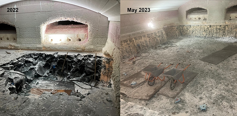 A short time later, the plant sustained severe damage, with one of the three furnaces destroyed beyond repair. Due to this damage, the company was forced to cut around two thirds of the approximately 600 jobs at the site. Vetropack has now hired 139 employees – primarily former staff of the site – to resume production.