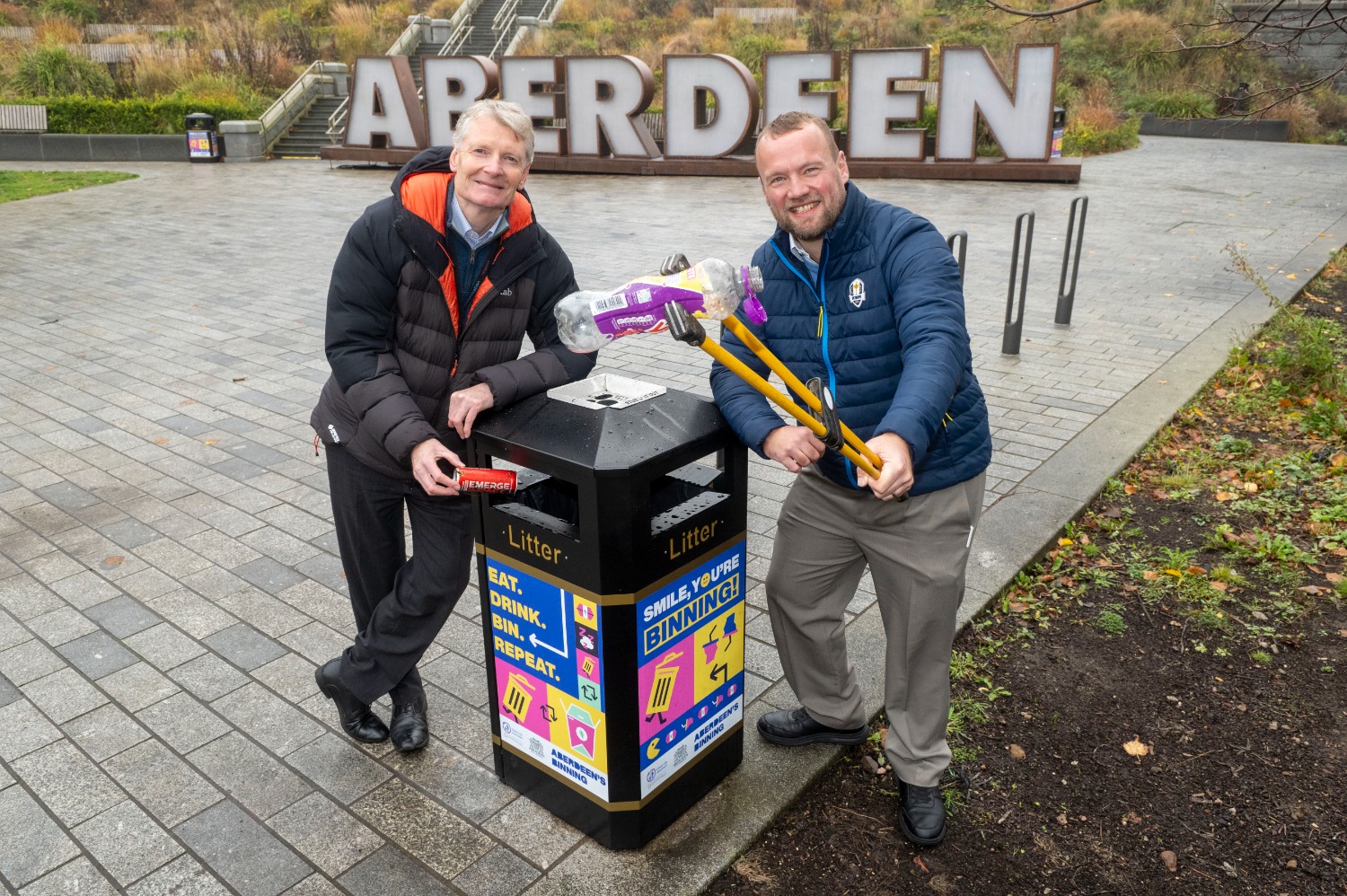 NEW colourful bins have been unveiled in Aberdeen as part of a new initiative to encourage people not to litter.