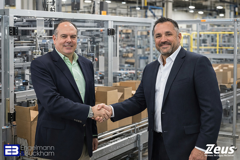 Iain Buckham, chairman, Engelmann & Buckham, added, “We are delighted to be partnering with Zeus. Our packaging process, materials handling and end of line automation solutions align perfectly with Zeus’s extensive customer relationships and packaging consumables capability.